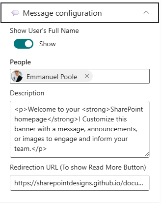 | People | Select specific users to feature in the welcome message. | User Picker |